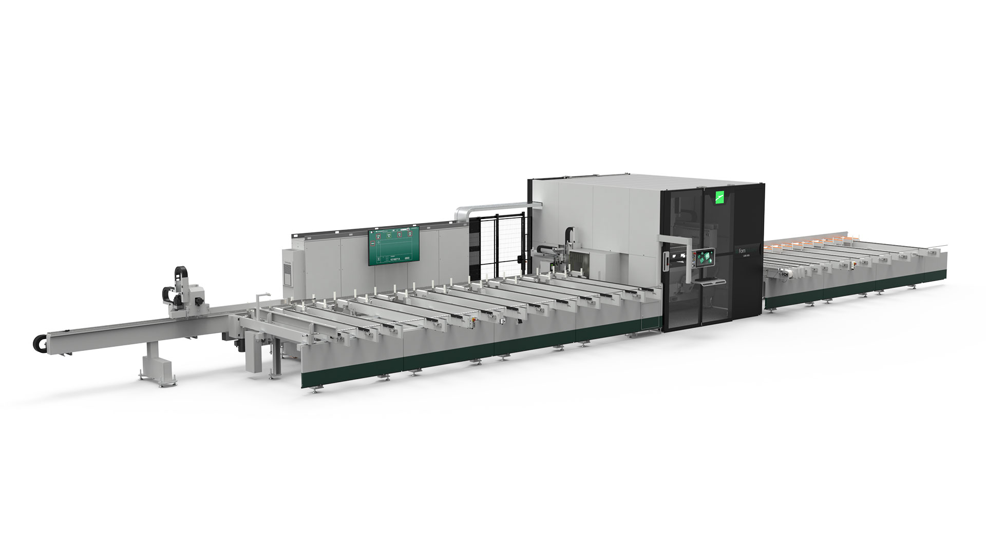 The machining unit LMX 650 tooled up with max 18 electrospindles and the cutting unit with infinite 360° blade rotation produce a continuous flow of processed and cut to measure elements. The additional machining module XMU carries out end milling (with blade, mill or mill units), boring and head tapping, as well as 45° and 135° inclined cuts, guaranteeing maximum flexibility for numerous applications. The high visibility cabin and the presence of the luminous FOM logo indicating the machine status are characteristic of the futuristic design of the system of LMX 650.